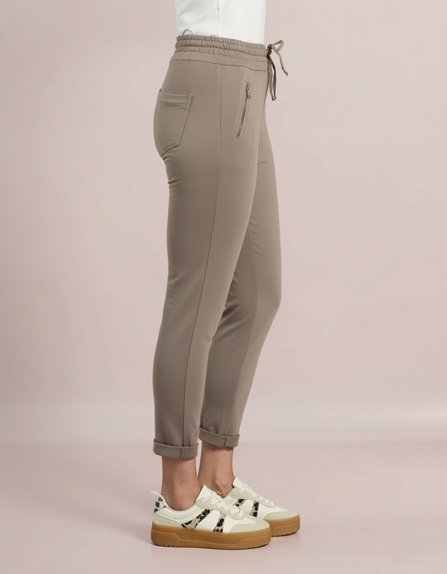 Decollage basic cotton blend jogger offer breathable comfort and durability. Designed with zip pockets.