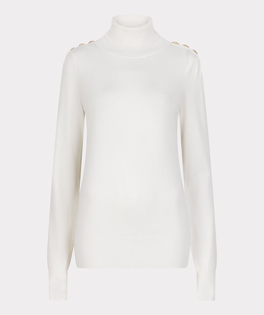 Esqualo's off white basic knitted sweater brightens layers with its clean palette, crafted from a soft blend that stretches gently for a flattering fit without sagging. The timeless design suits tucking or hanging loose.