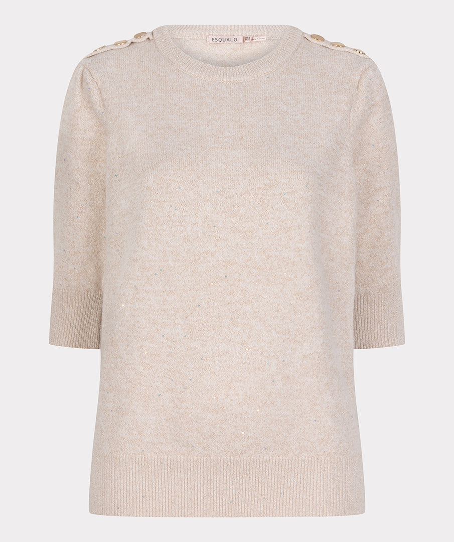 Esqualo's sand short sleeve sequin sweater offers a warm glow through its delicate sequin work on soft knit, with short sleeves providing a fresh take on sparkle for those milder winter moments. The neat hem and neckline make it endlessly adaptable.