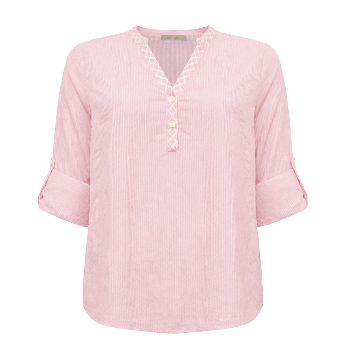 Light and classic blouse in a fine striped quality. The blouse has a V-neck with decorative details and sleeves that can be unbuttoned for a relaxed look.