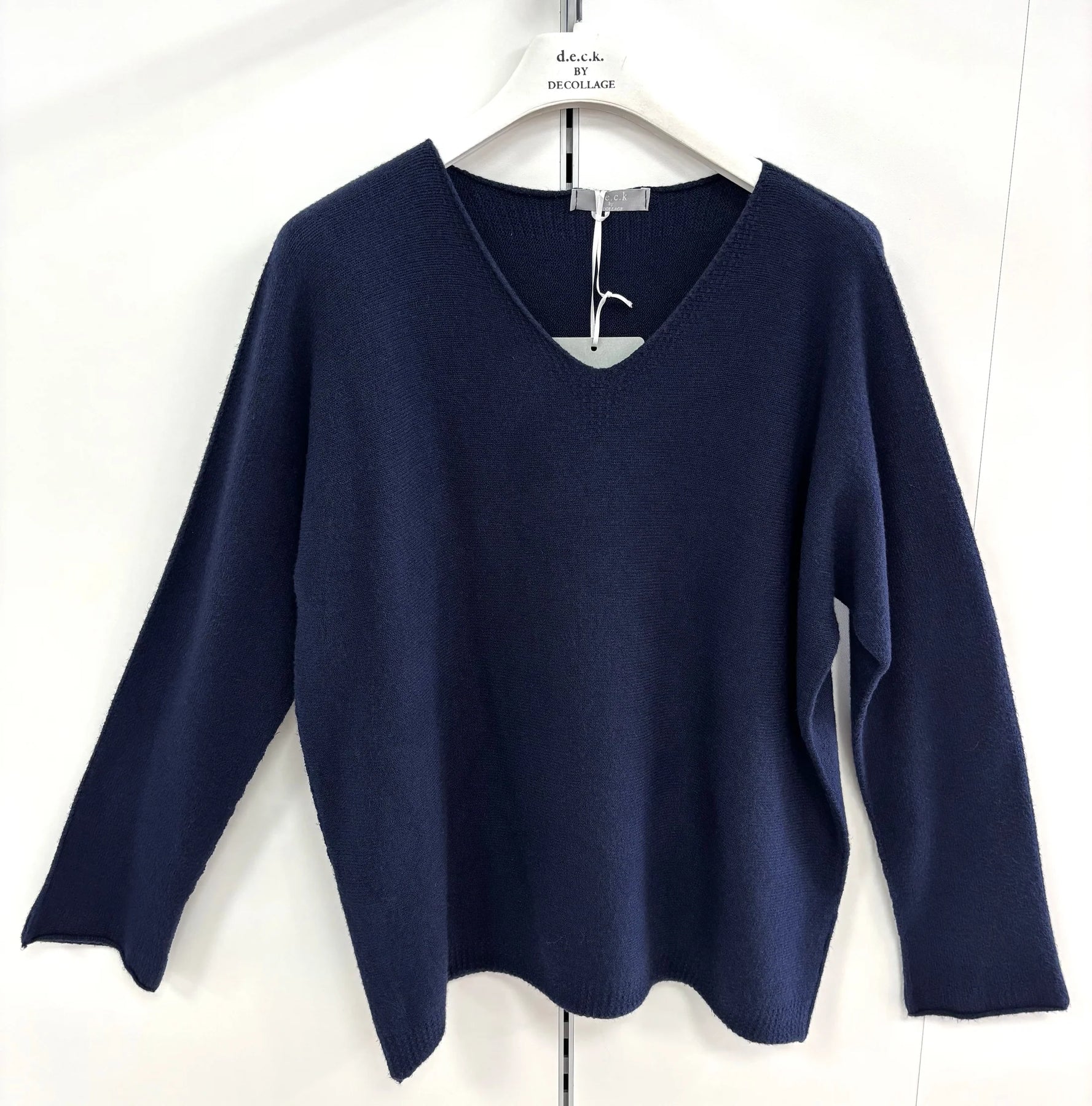 Decollage Navy V-Neck Boyfriend Knit