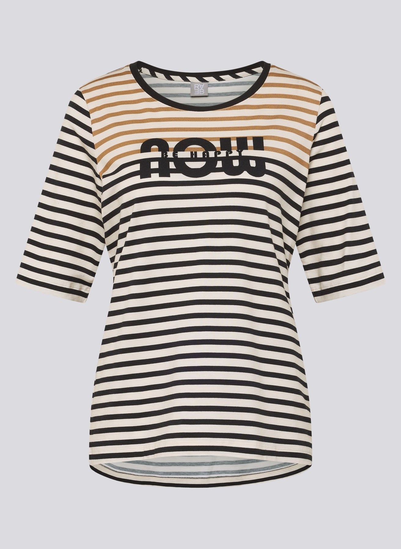 A highlight for sporty everyday looks: This shirt combines classic cross stripes with a striking print lettering. The soft material mix with modal and elastane ensures a comfortable fit and a dimensionally stable fit. The round neckline is wide-contrast, the cut is slightly waisted. The placed strip combination brings movement to the design.
