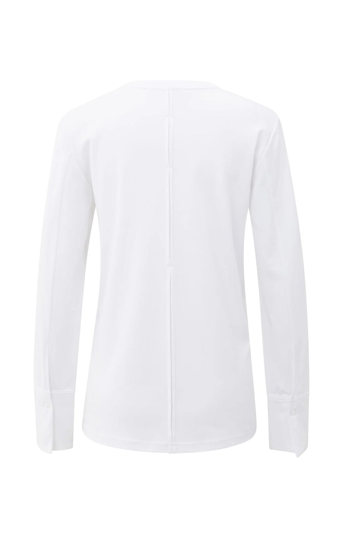 This comfortable jersey top features a round neckline, long sleeves and a regular fit. The woven cuffs with button closure add a refined touch to the casual design. A vertical seam on the back provides subtle structure. Made from a soft, stretchy fabric for all-day comfort. The model is 175 cm and wears size S.